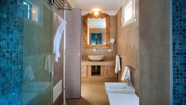 It boasts breathtaking 180 degree views of the Mediterranean sea. As we walk around the property, there are beautiful trails that take us along the cliffs, and lead down to our private beach on one side, and private dock on the other.