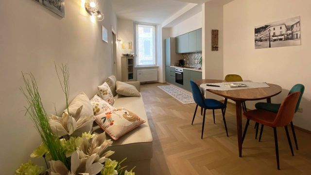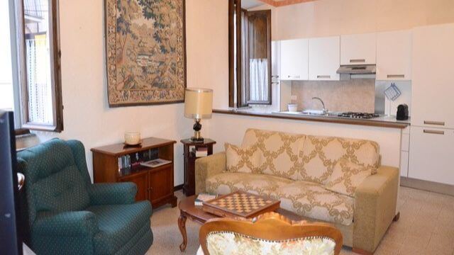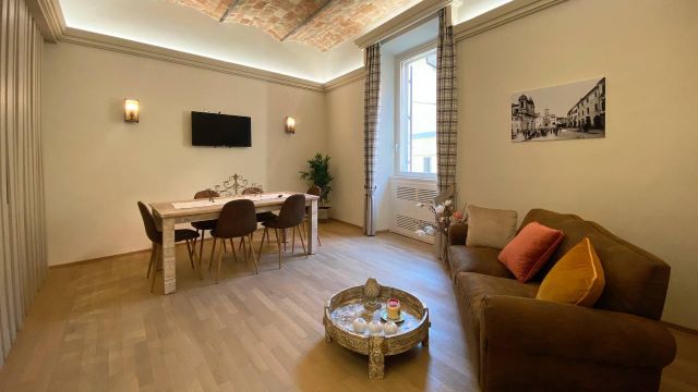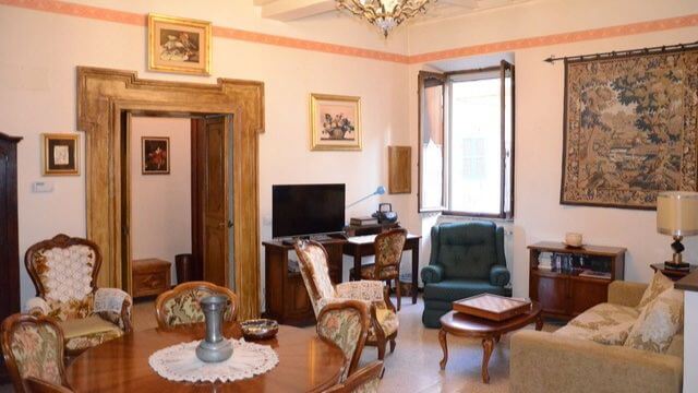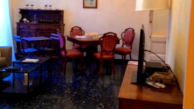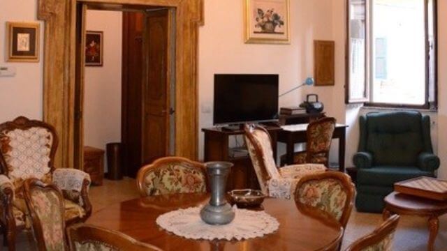 Description 2 BR / 1 BA (One double bed, one twin) in St Giorgio District on the Ground Floor - Beautiful, decorated ceiling, antique furniture. - AC, Wifi, TV, Hairdryer, Iron, Washing Machine, Living Room area, Kitchen (Complete: Oven, Coffee Maker).