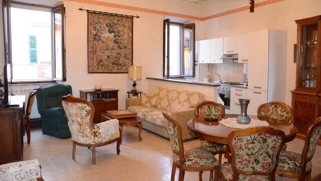 Description This village home was completely restored in 2017. It is just off the main piazza and has a gorgeous valley view from a large terrace. Additionally, the home boasts Satellite television, Heating, Air Conditioning, and WIFI Internet Access. You are just a short walk from the main piazza. from where our days begin and end. The home has a fully-equiped kitchen, queen-size bed, one bathroom with shower, spacious living and dining room, as well as a clothes washer. There is elevator service to this 4th-floor home
