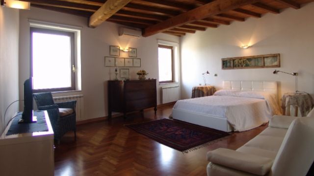 Description Ponticello is fully air conditioned and heated. It features a loft bedroom with a queen, 1 bathroom, a full kitchen/den, and a balcony with a stunning view toward Umbria. Ponticello offers wireless internet and satellite television as well. The den area has a queen-sized futon, allowing this home to sleep up to four people. Ponticello is about 800 feet from the town center.