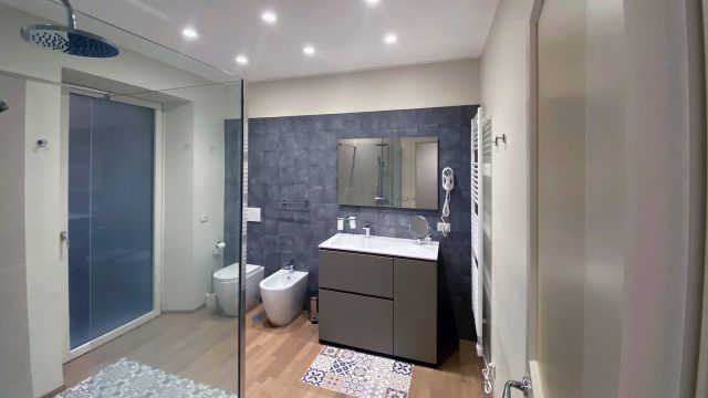 Description 1 BR / 1 BA (double bed) overlooking the square. 2nd Floor - stairs - Minimalist modern furniture – completely refurbished 100-year-old building. - AC, Wifi, TV, Hairdryer, Iron, Washing Machine, Living Room area, Kitchen (Complete: Dishwasher, Oven, Coffee Maker). PALAZZO FRANCESCA & PALAZZO SALVATORE are in the same building, so they can be booked together for families or friends that want to be close.