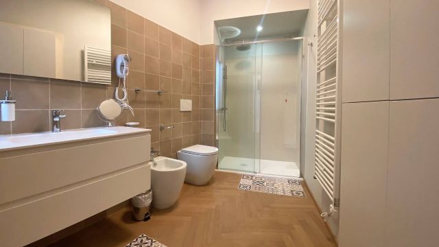 Description 2 BR / 2 BA (2 double bed) overlooking the square. 1st Floor - stairs, Minimalist modern furniture – completely refurbished 100-year-old building - C, Wifi, TV, Hairdryer, Iron, Washing Machine, Living Room area, Kitchen (Complete: Dishwasher, Oven, Coffee Maker). PALAZZO FRANCESCA & PALAZZO SALVATORE are in the same building, so they can be booked together for families or friends that want to be close.